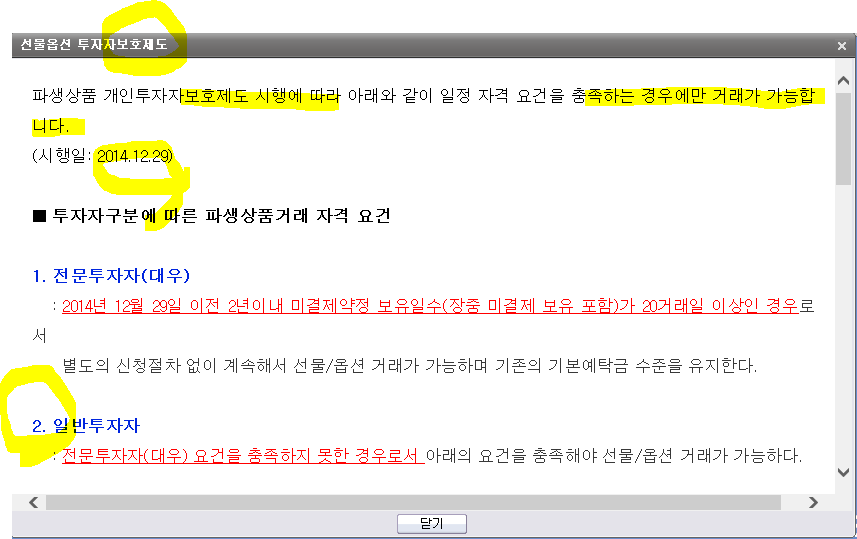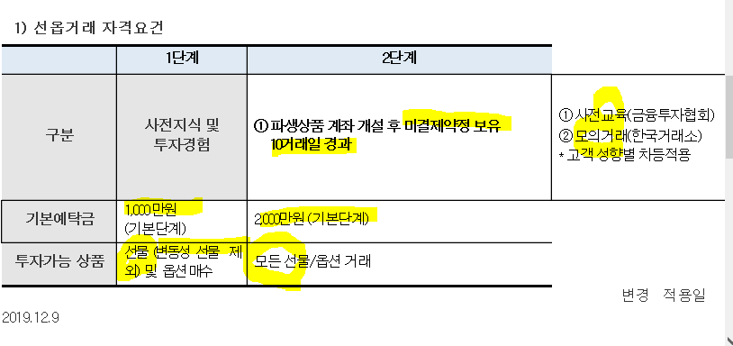 ㅡ 모든 선물, 옵션 거래를 위해서는 2,000만원의 기본예탁금을 요구하고, 사전교육과 모의거래도 수강해야 하는 것으로 보이는데,