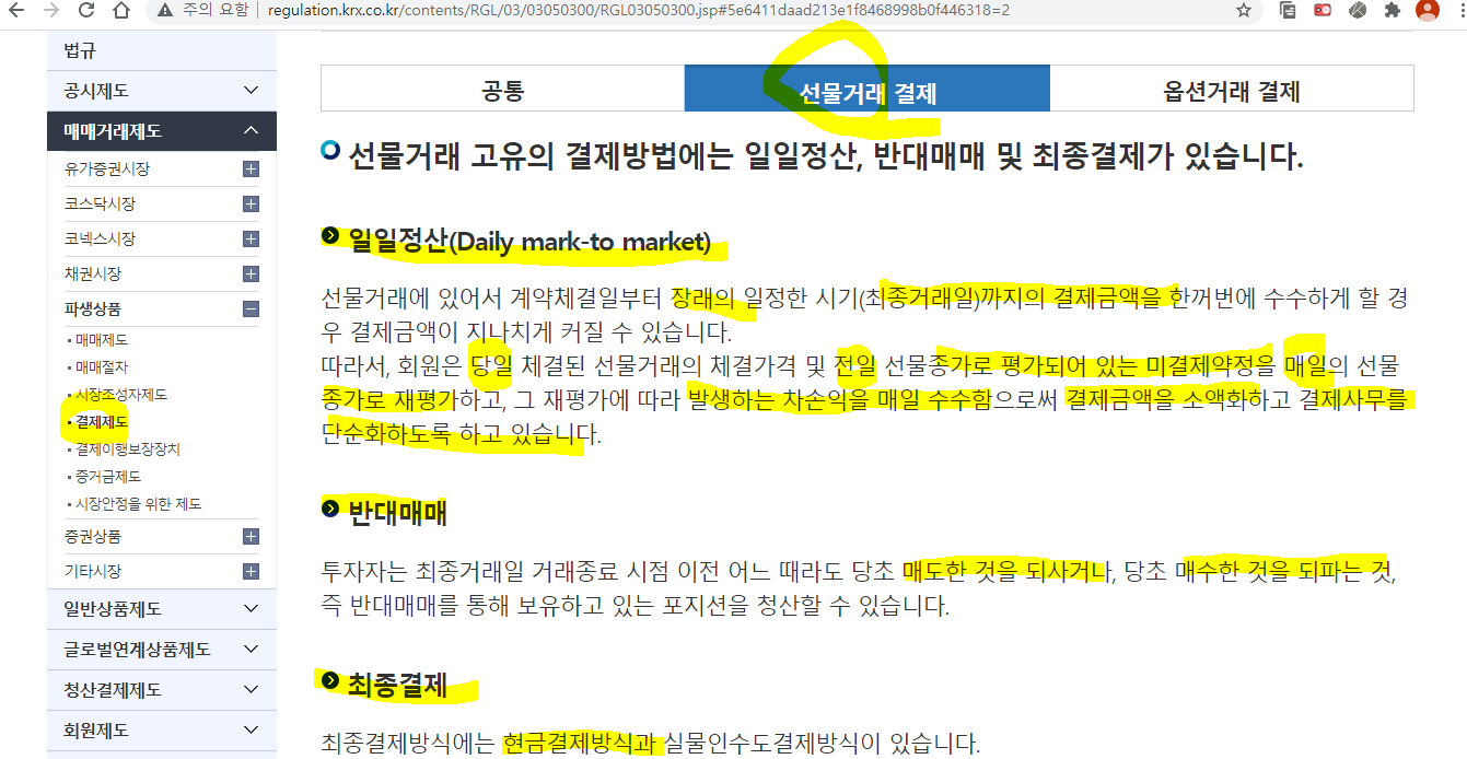 /선물거래 결제방식(일일정산, 반대매매, 최종결제)
