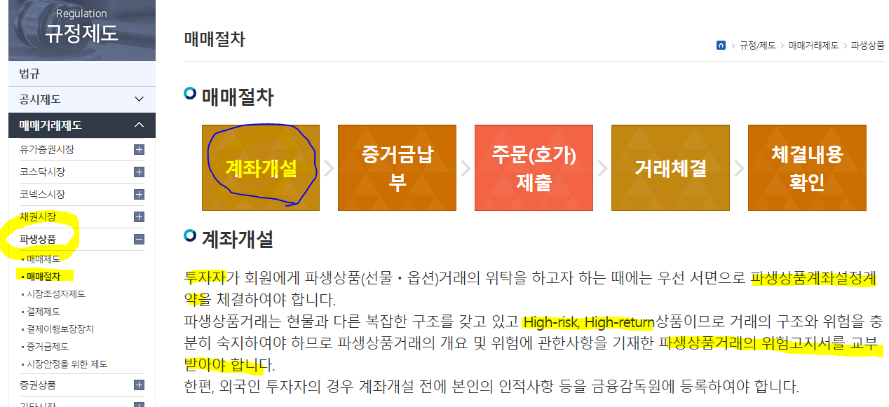 ㅡ 파생상품 거래를 하려면, 우선 회원(증권사)와 투자자(나)가 파생상품계좌설정계약을 체결하여야 한다고 하는데,