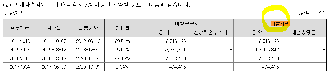 /18.11.14일 의결한 K-IFRS 제1115호 고객과의 계약에서 생기는 수익 적용 전으로, 미청구공사 & 매출채권으로 표시되었다.