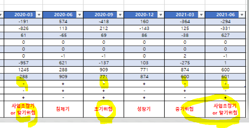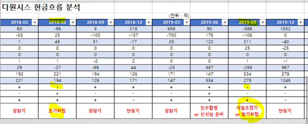 /연도별로 봤을 때 성장기 기업으로 보이나, 분기별로 봤을 때 위험기업으로 보였는데,