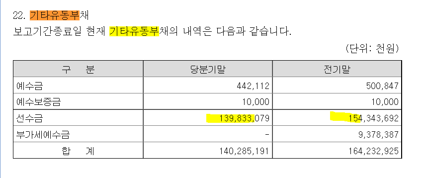 /선급금 의 증가, 선수금의 감소(의무제공 후 매출전환)가 보인다.