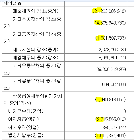 ㅡ20년도에도 영업활동 현금흐름 -의 모습을 보였다.