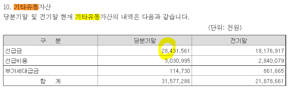 /원재료 등 매입 위해 먼저 돈 줘서 선급금 발생한 것으로 보인다.
