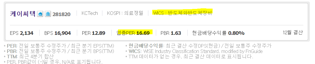 케이씨텍 PER 12.72배(21.1Q EPS로 21.7.12. 종가 27,150 나누어 계산)