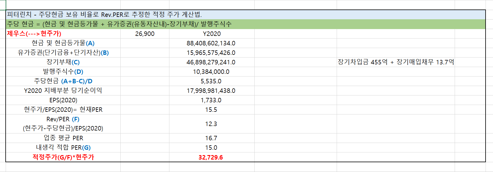 현금 보유량 및 적정주가 계산식은 '신나구로'님의 포스팅을 참고했다.