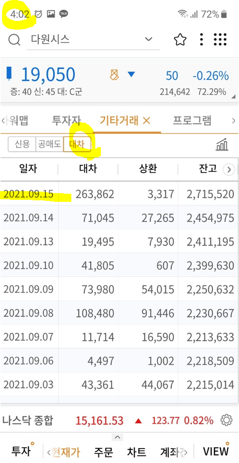 ㅡ대차잔고는 장이 끝났어도 확인은 불가했다. 시간 외장까지 모두 끝난 18시나 되어야 확인이 될 듯하다.