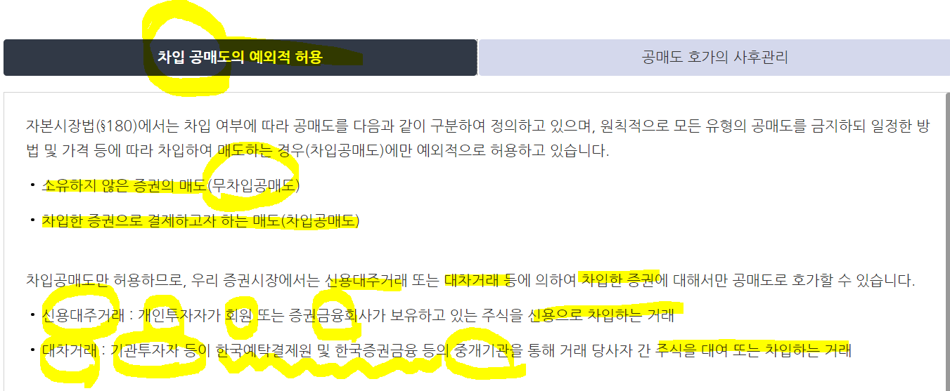 ㅡ공식적으로는 한국에서는 '차입공매도'만 예외적으로 허용한다고 되어있다.