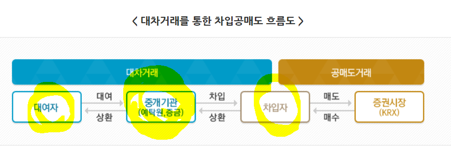 ㅡ한국예탁결재원, 한국증권금융 등의 '중개기관'이 존재하며, 대여자와 차입자를 이어주는 역할을 하고 있다.