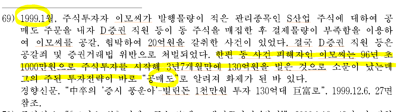 ㅡ우리나라 공매도 규제의 연혁과 과거 사회적으로 크게 문제가 되었던 사건들에 대한 설명이 나오는데 아주 어메이징하다. 저당시에도 슈퍼개미는 존재했다!!