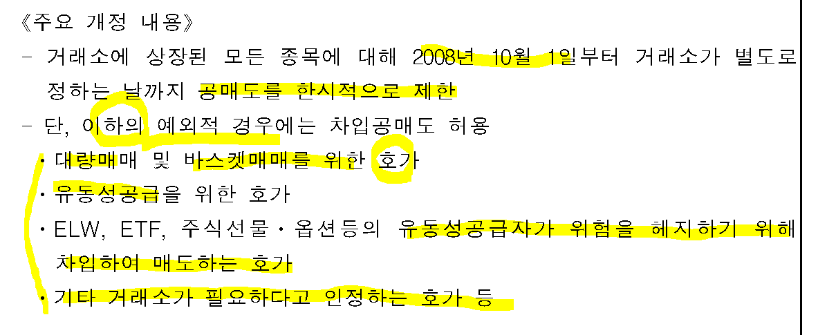 ㅡ2008.10.1. 차입공매도를 제한하는 거래소 업무규정 및 동 시행세칙을 개정함.