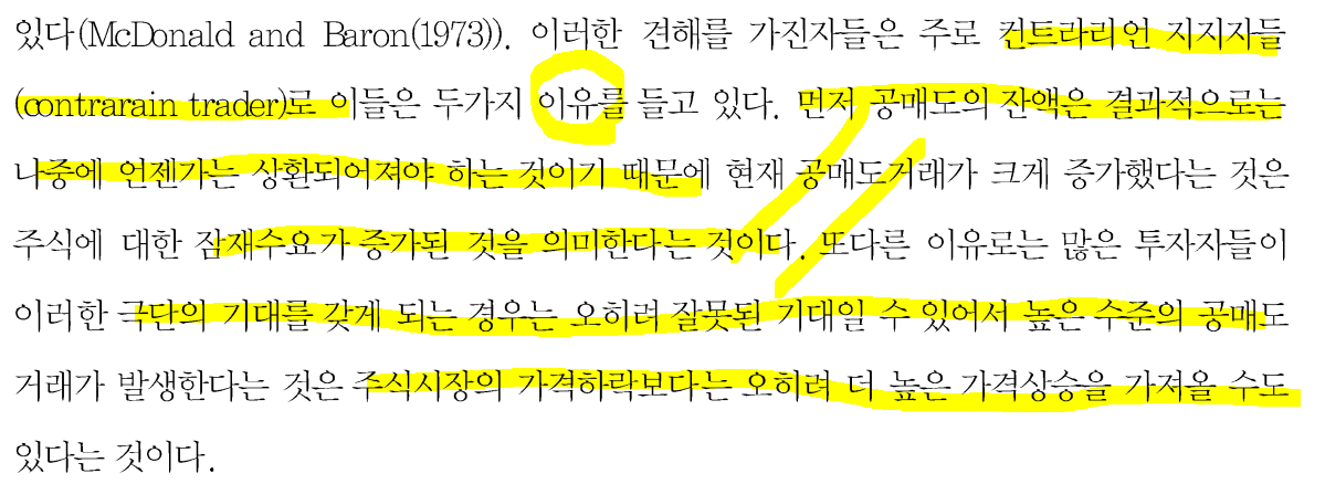 ㅡ컨트라리언 지지자들(역발상 투자자)이 말하는 공매도잔고량증가와 주가상승의 상관관계 이유.