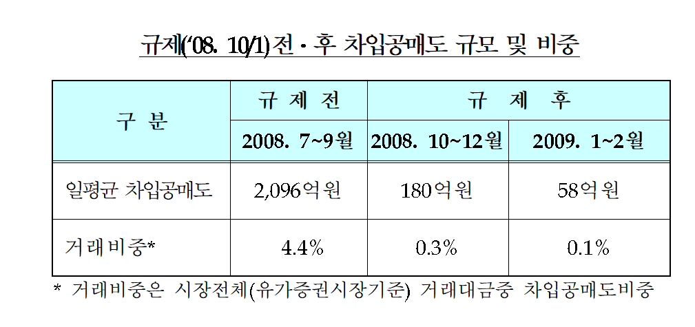 ㅡ2009.3.25. 차입공매도 규제 이후 차입공매도 신고결과 분석내용.