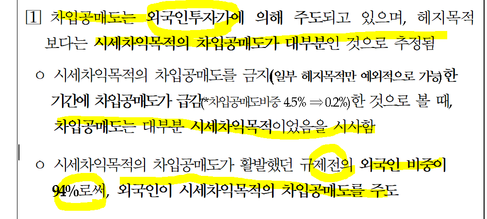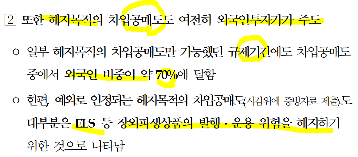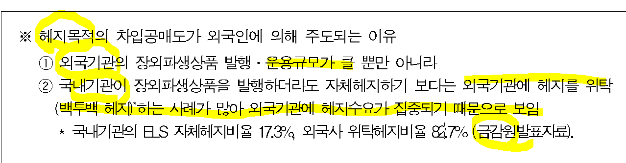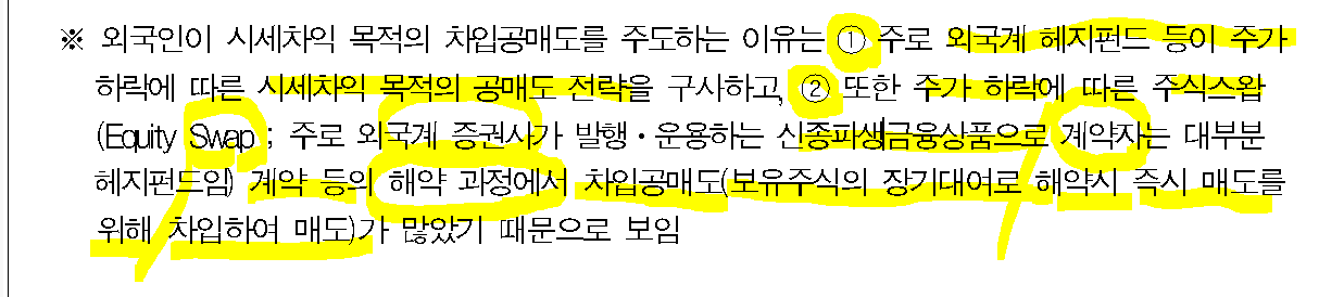 ㅡ외국인투자자의 시세차익목적의 차입공매도가 대부분인 것으로 추정.