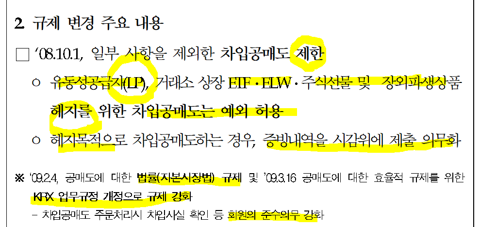 ㅡ지난 번 확인한 차입공매도 제한과 예외사항.