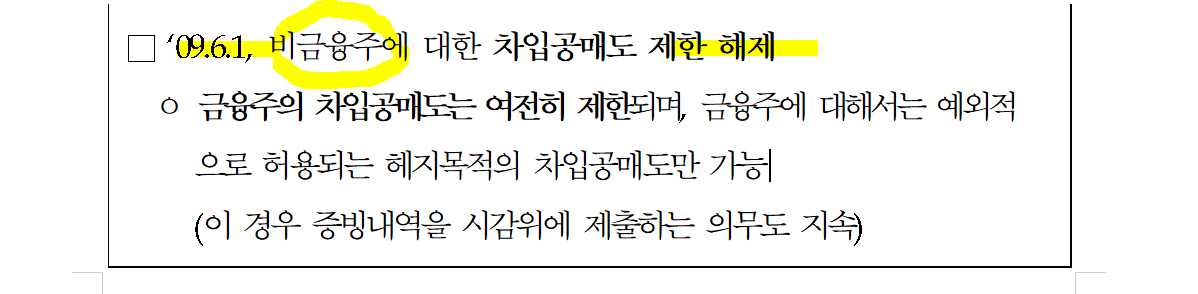 /2009.6.1. 금융주를 제외한 종목의 차입공매도 재개.