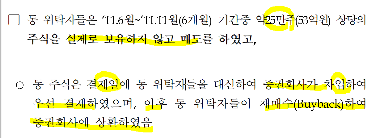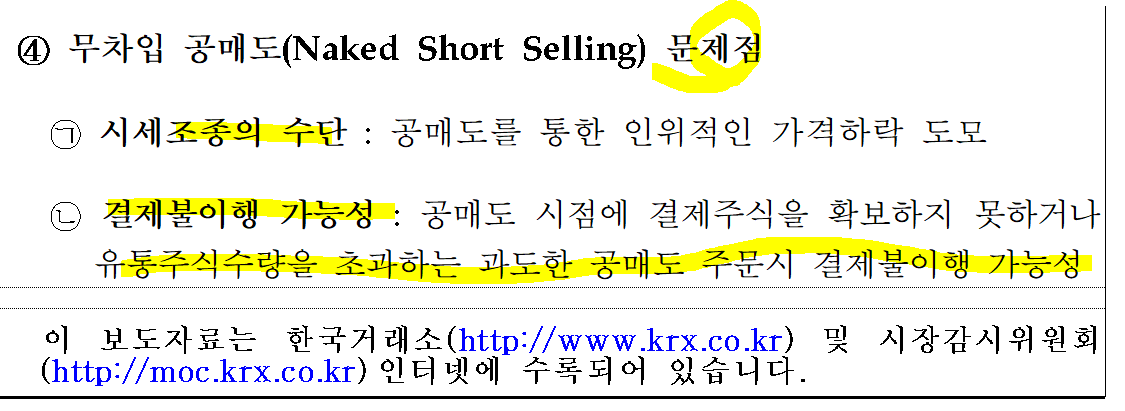/~차입계약일시 이전 공매도는 무차입 공매도로 법령 위반사항임.