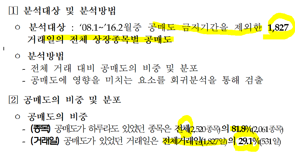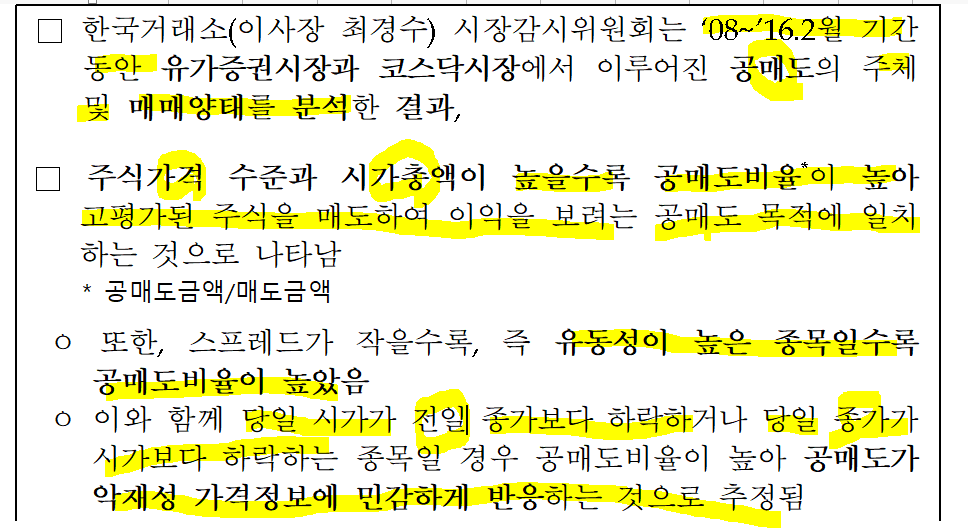 ㅡ2008~2016.2월 동안 공매도 주체 및 매매양태 분석/ 고평가, 악재성 가격정보에 민감하게 반응.