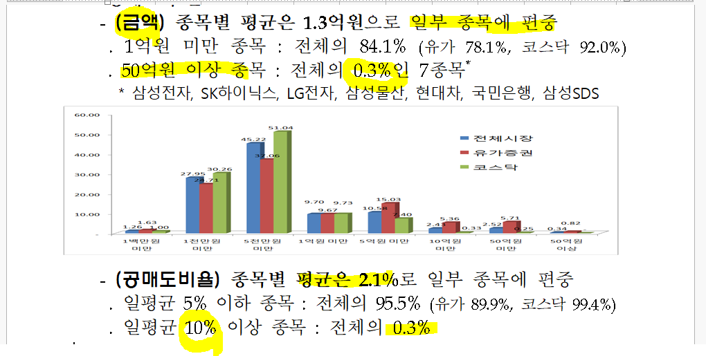 ㅡ공매도 금액과 비율은 일부 종목에 편중된 모습 보였음.