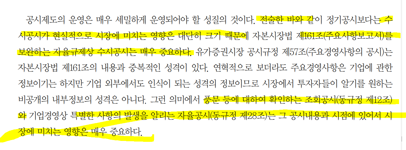 ㅡ수시공시(조회공시, 자율공시)가 시장에 미치는 영향력이 매우 크기 때문에 중요하다.