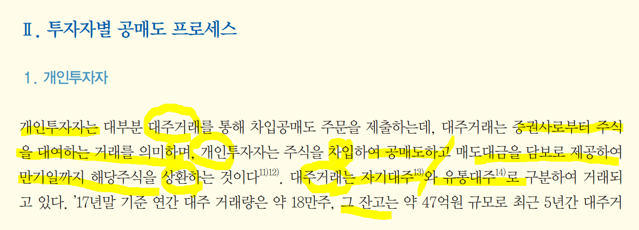 /참고로 공매도 처음 공부했을 때, 개인 대주거래와 대차거래 차이에 대한 자세한 설명과 위와 같은 도식화 해 놓은 자료를 만나지 못하여 정말 햇갈렸었다...