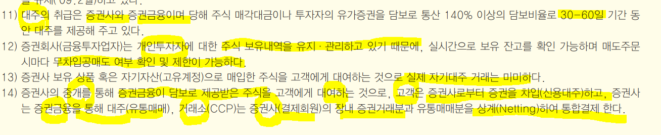 /한국증권금융이 담보로 제공받은 주식을 증권사의 중개를 통해 고객에게 대야하는 '유통대주'로 구분할 수 있음.