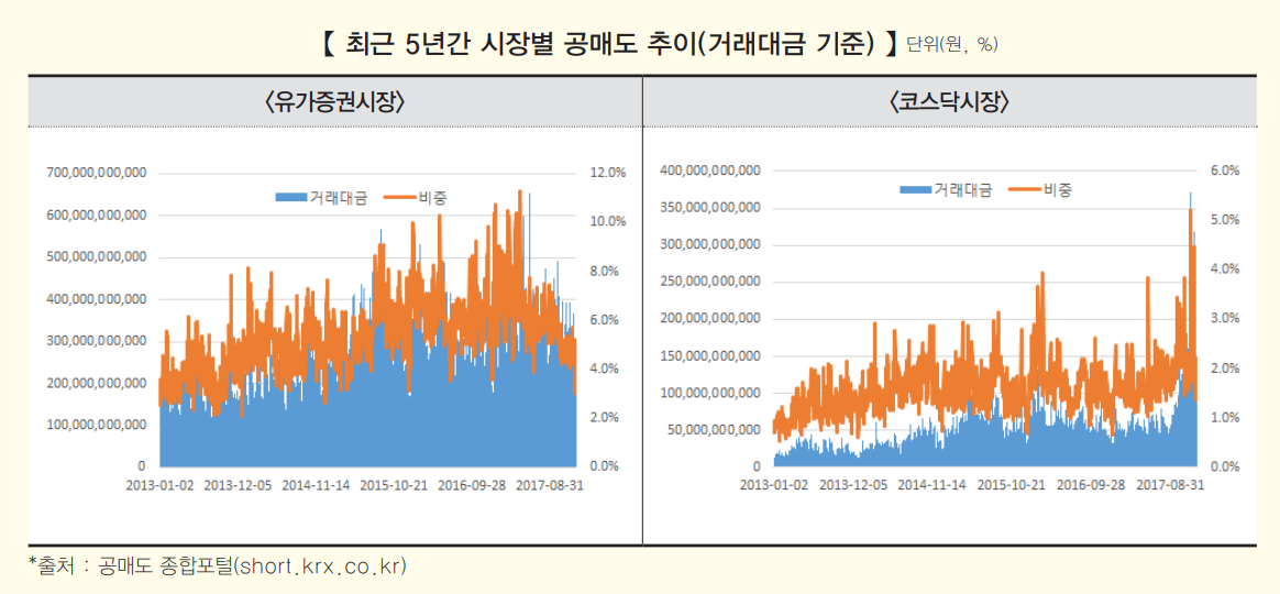 ㅡ전체 거래대금 대비 공매도 비중의 비교. 우려할 수준은 아닌 것으로 나타남.