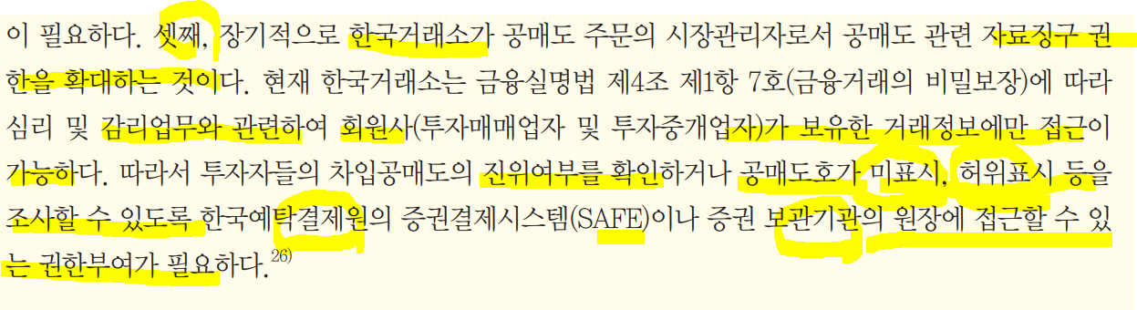 ㅡ한계성은 있으나, 공매도 정보의 사전유출에 책임이 없다는 것은 아니며, 한국시장에서 언제든 나타날 수 있는 점에서 주의를 해야 한다는 점.