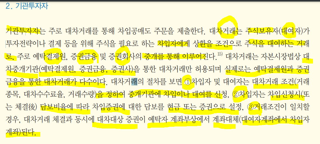 ㅡ투자자별 공매도 프로세스. 대차거래를 통한 기관투자자의 공매도.