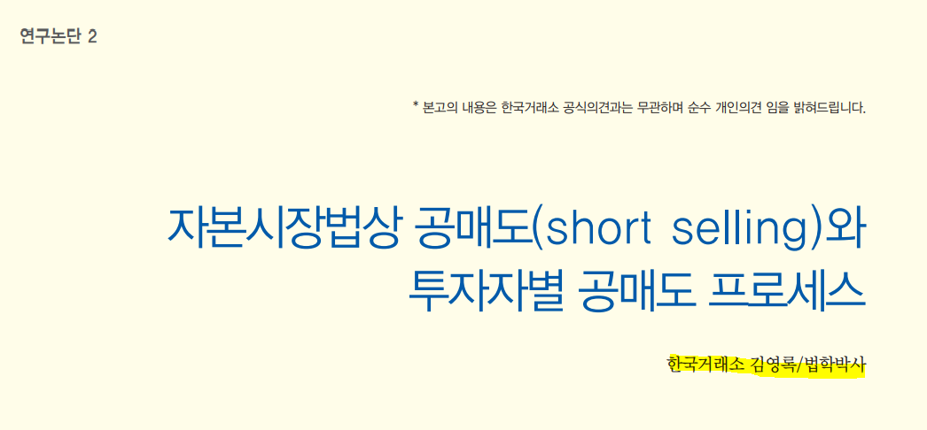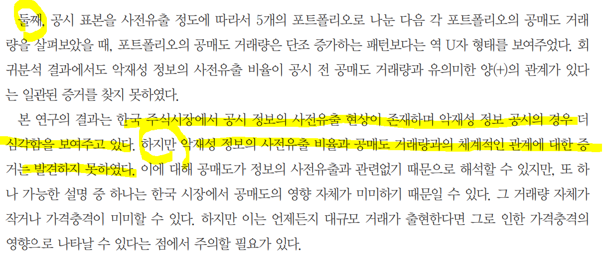 ㅡ한계성은 있으나, 공매도 정보의 사전유출에 책임이 없다는 것은 아니며, 한국시장에서 언제든 나타날 수 있는 점에서 주의를 해야 한다는 점.