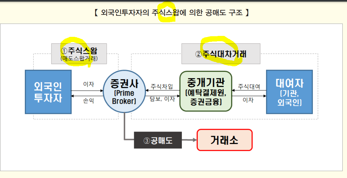 ㅡ외국인투자자의 주식습왑에 의한 공매도 구조.