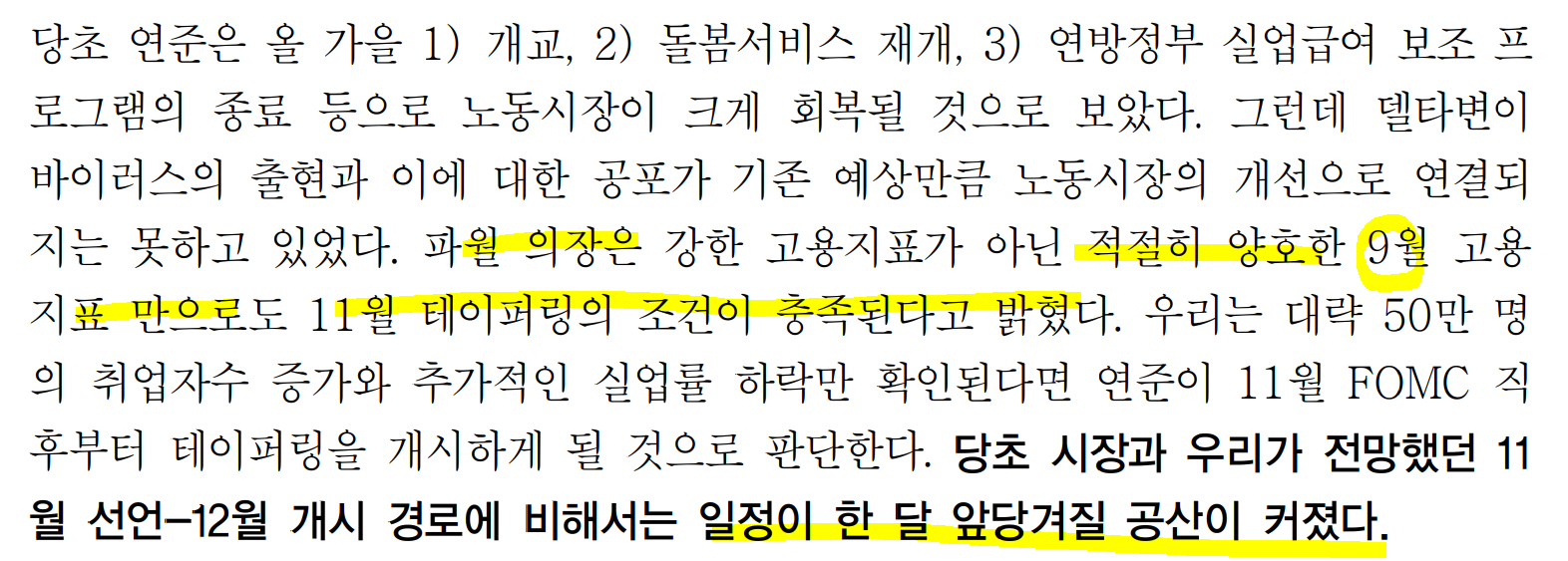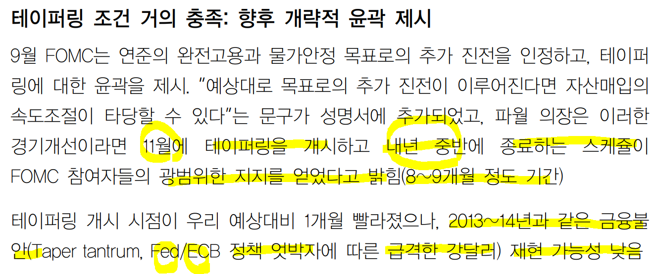 ㅡ9월 고용쇼크만 없으면 11월 테이퍼링에 무리 없을 것.