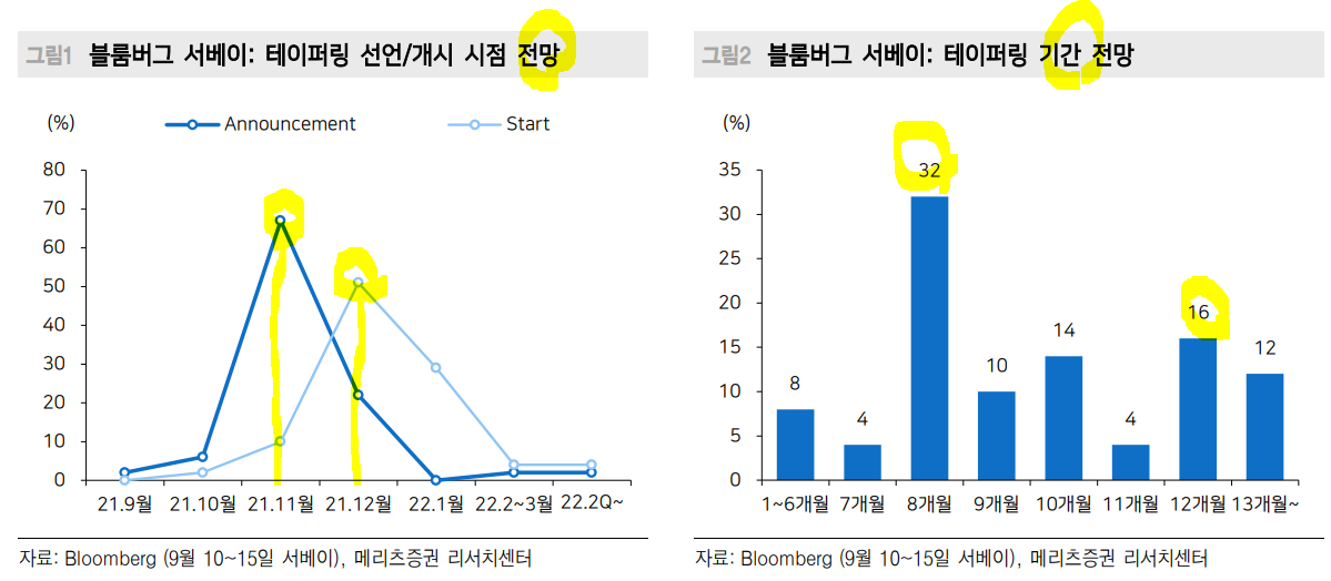 ㅡ21.11월에 테이퍼링 개시. 22.6월경 종료하는 스케쥴이 지지 얻음.