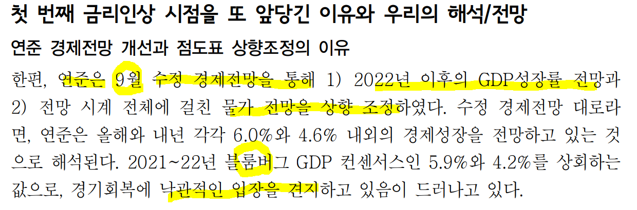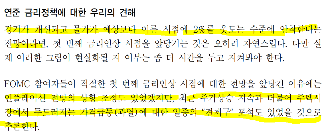 ㅡ금리인상 시점 전망 앞당긴 이유. 인플레이션 전망의 상향 조정과 자산가격(주가, 주택)의 상승.