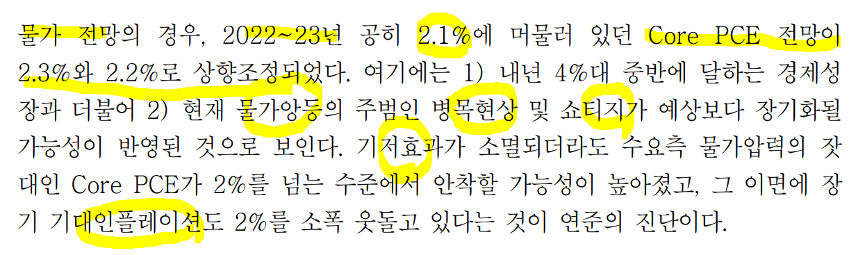ㅡ연준 수정 경제전망 통해 22년 이후 GDP 성장률 및 물가 전망 상향 조정.