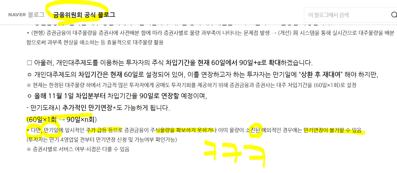 ㅡ금융위원회 공식 블로그. 주식 급등 하면, 만기연장 같은 거 못한다. 손해 그냥 다 봐라 개인들아 ㅋㅋㅋㅋㅋㅋ.