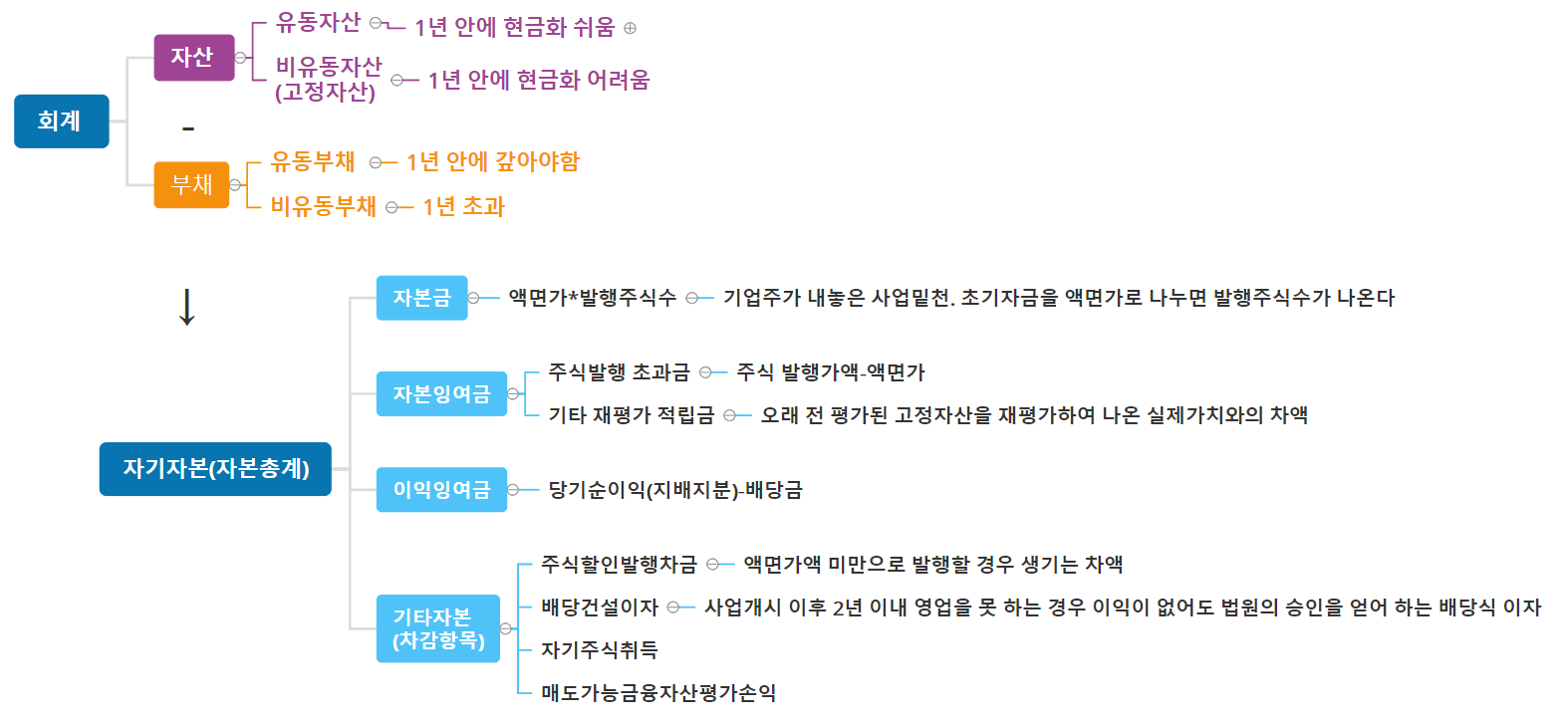 사실상 자산과 부채만 존재하며, 자산에서 부채를 뺀 나머지를 자본이라고 지칭하고 구분지을 뿐, 실재 존재하는건