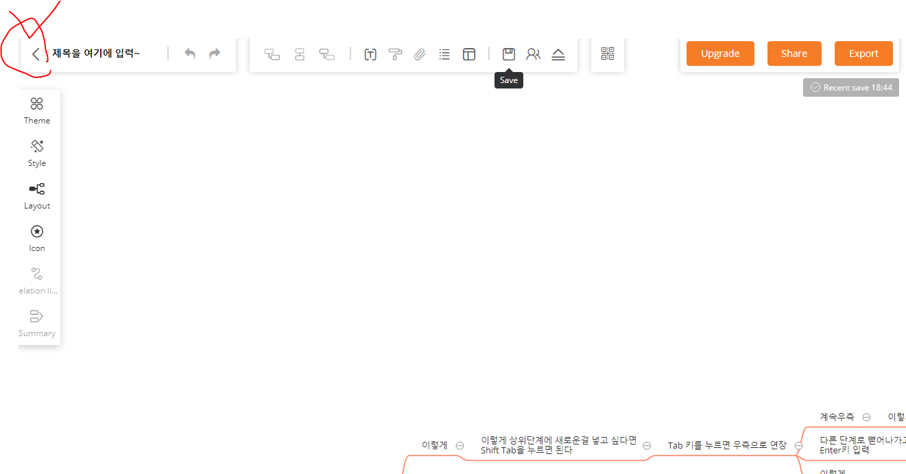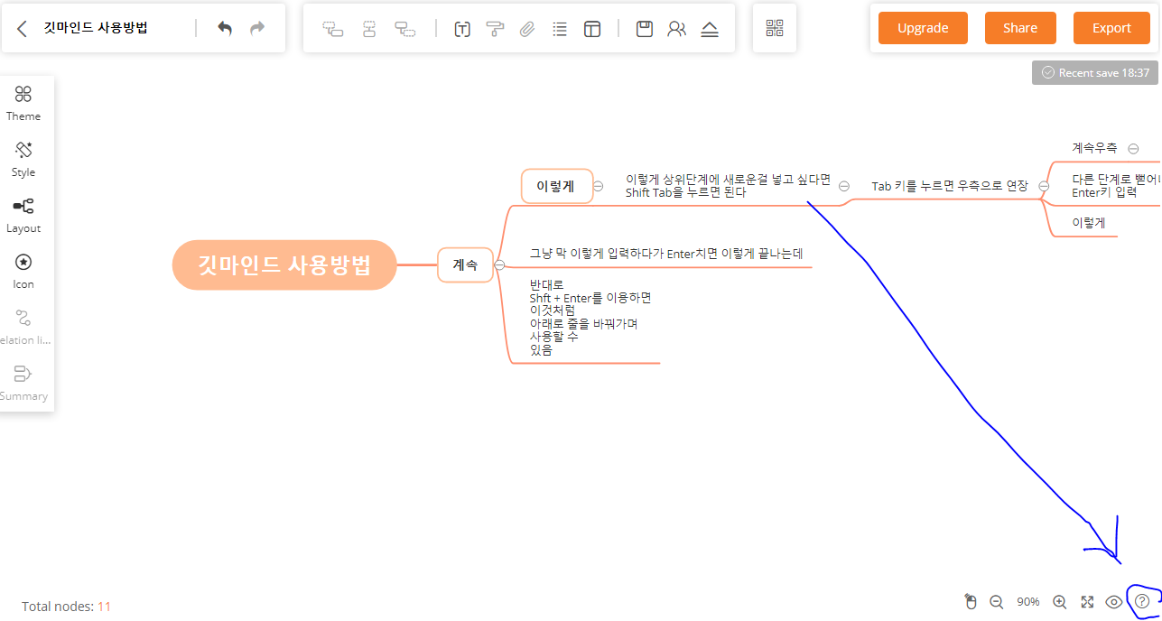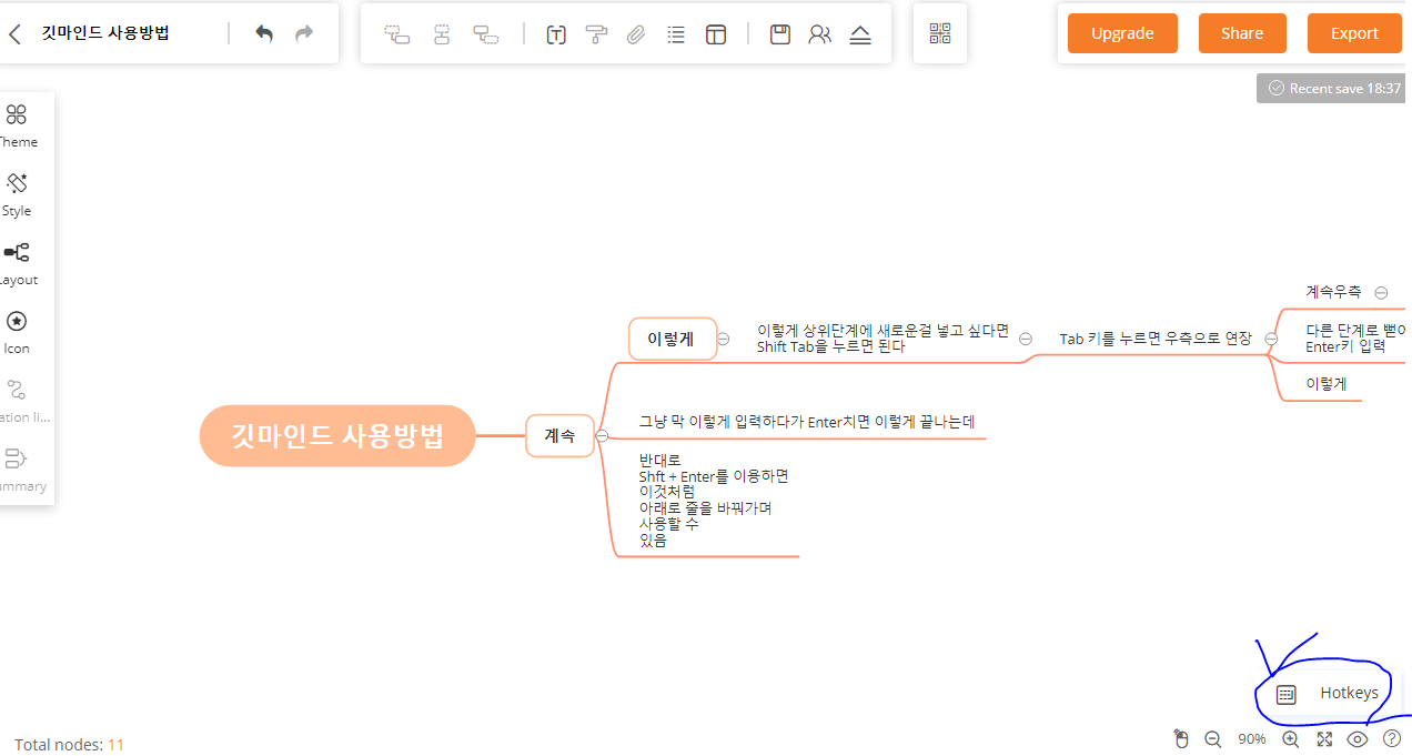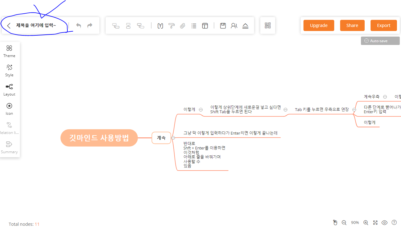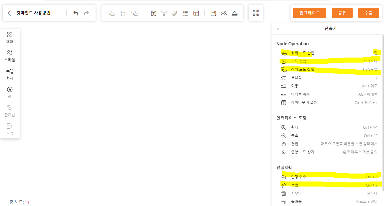 간단 설명을 위해 새로운 마인드맵을 만들어 보려 한다.