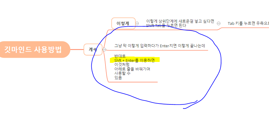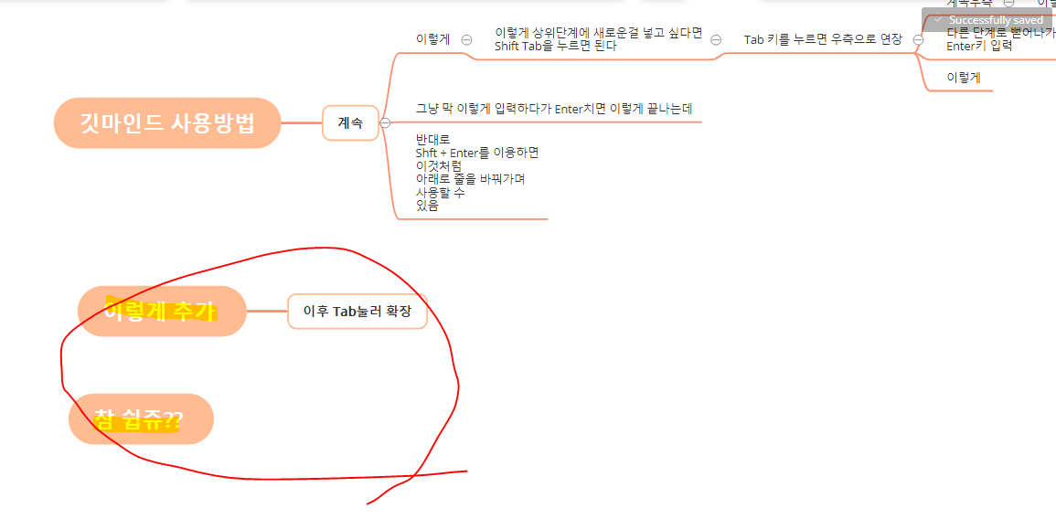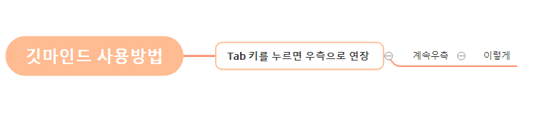이후, 하위노드(하위단계라고 생각하면 됨)를 삽입하기 위해선 Tab키를 누르면 된다.