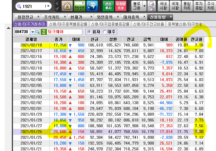 대차잔고 감소추세