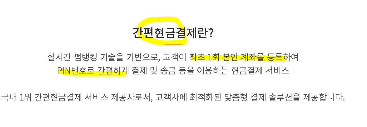 1) 간편 현금결제 = PIN번호 눌러서 간단하게 결제하는 것.