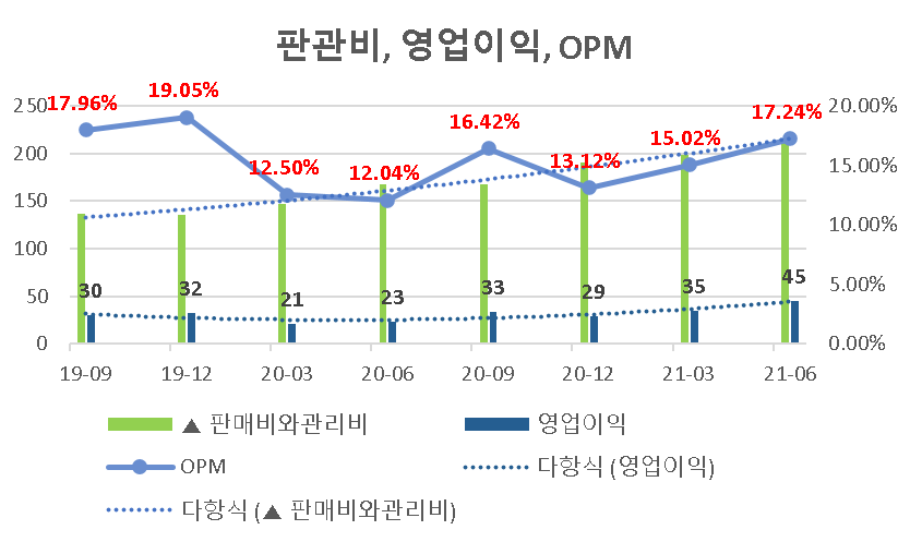 매출액 성장과 함께 판관비(고정비)도 우상향 하고 있다.