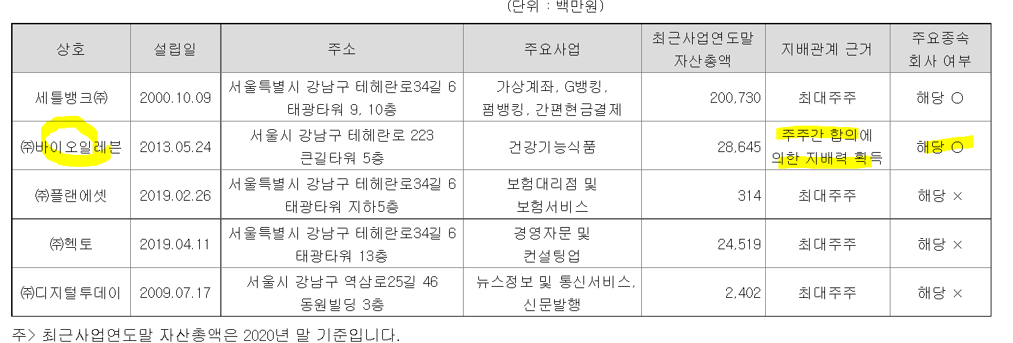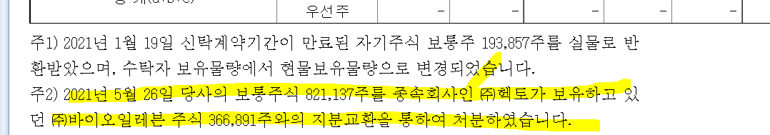 알고 보니, 세틀뱅크의 종속기업 '(주)헥토'가 보유하던 바이오일레븐 주식 과 민앤지의 자사주를 지분교환을 통하여 처분한 것이었다.