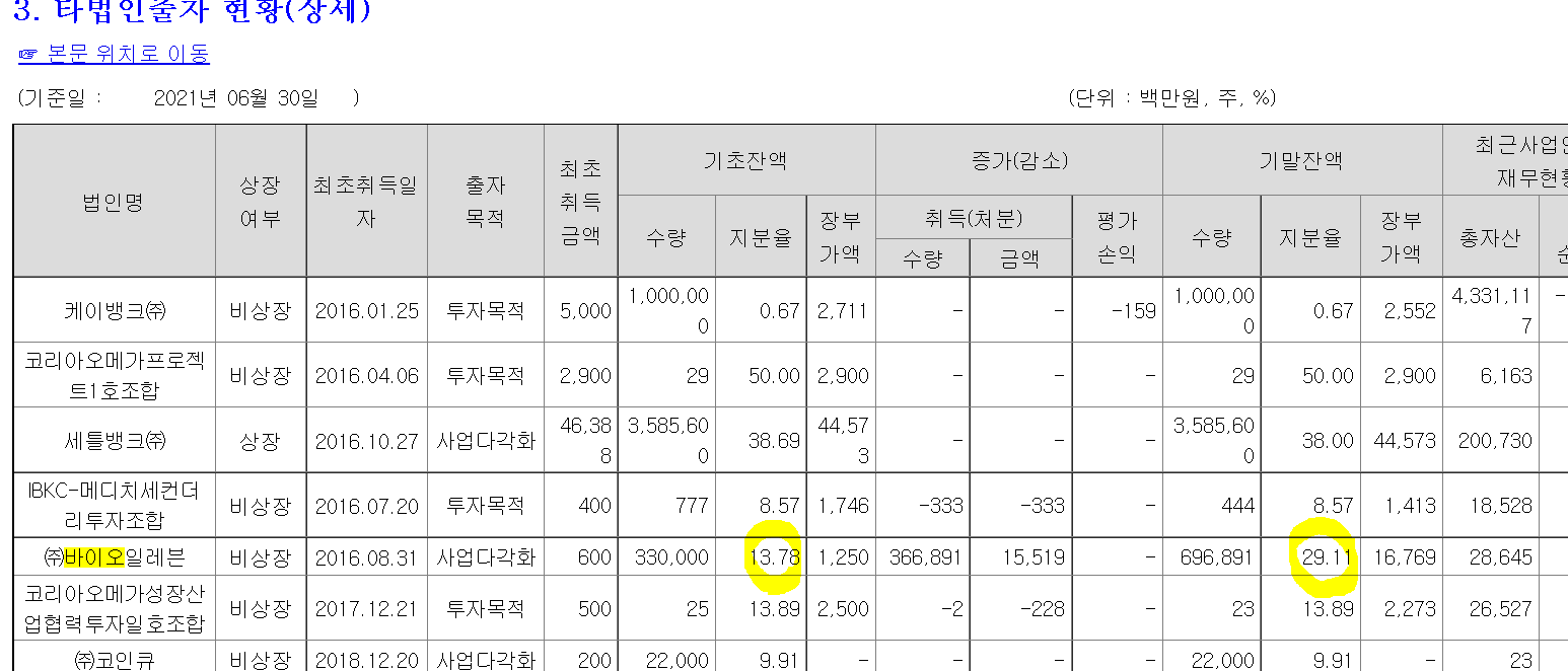 관계기업이던 (주)바이오일레븐-비상장사-에 대한 관계기업 주식(15.32%)을 전량 매도했고,