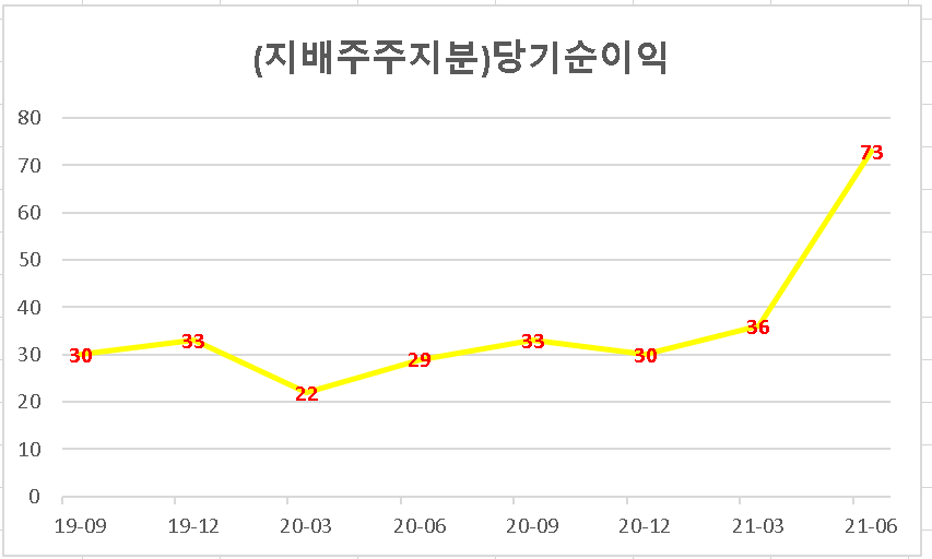 2Q21 영업이익에 비하여 지배주주 당기순이익 크게 상승했는데,