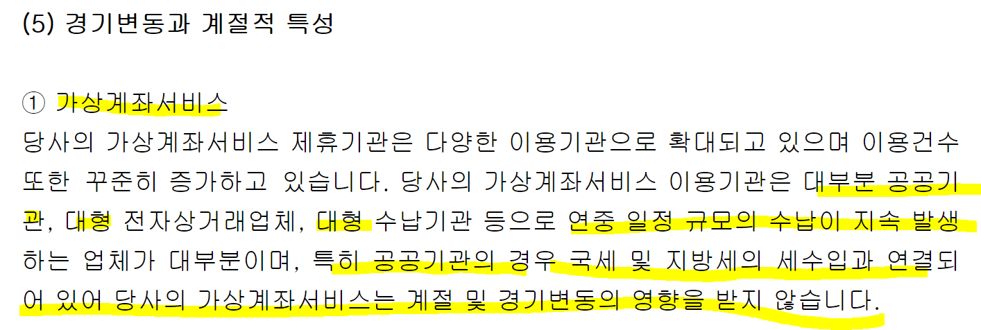 매출 비중 2위 가상계좌. 고정 거래처 확보. 하방 안정성 있음.