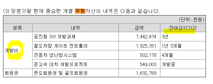 개발비를 무형자산으로 놓고 상각하고 있다.