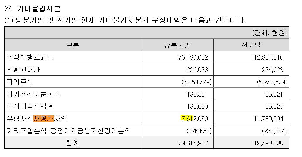 재평가차익 12억 → 41억. 토지 재평가 금액 반영한 듯.