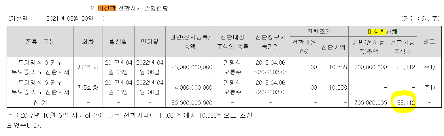 전환청구가능기간 ~22.3.6. 전환 가능 주식수 66,112주.