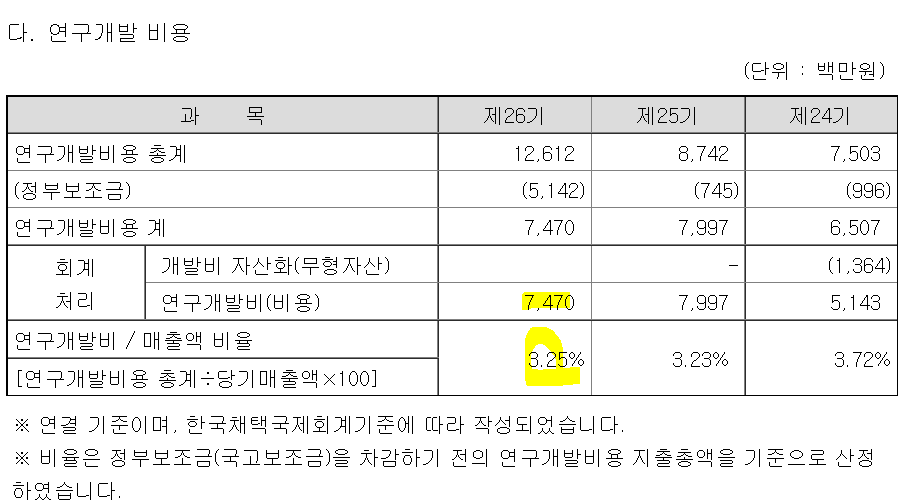 연구개발비 74억(+28억), 연구개발 비율 3.25%